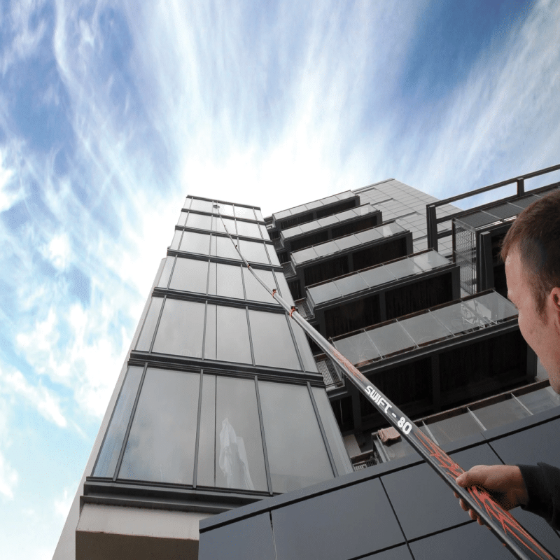 Solution: DCS deployed a specialist window cleaning team using purified water-fed pole systems and safe access methods, scheduled outside peak office hours to minimise disruption.